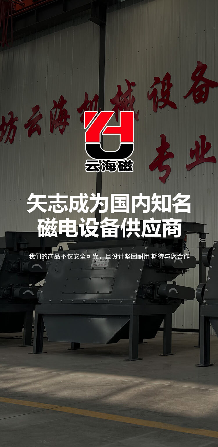 濰坊云海機(jī)械設(shè)備有限公司始建于2009年,是生產(chǎn)磁電機(jī)械設(shè)備的廠家。系生產(chǎn)建材、冶金、礦山、化工等行業(yè)微機(jī)自動(dòng)化、檢測(cè)、控制專用設(shè)備的公司。主要產(chǎn)品工業(yè)自動(dòng)化配料系統(tǒng)、電磁永磁除鐵器、永磁磁選機(jī)、電磁振動(dòng)給料機(jī)、皮帶螺旋輸送機(jī)、電磁滾筒、破碎機(jī)、包裝機(jī) 、除塵器等系列產(chǎn)品。